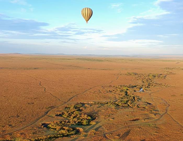 Rise and shine! It’s time to take your safari experience to new heights. Take a hot air balloon across the Mara River giving you the perfect bird's eye view of the plains and forests below.
